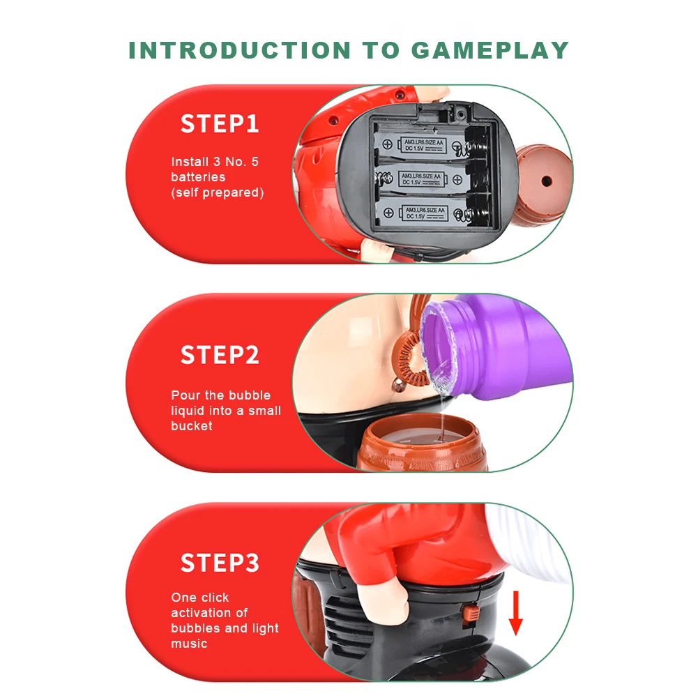 Entre bulles colorées, effets lumineux, musique festive et sons rigolos, ce Père Noël garantit des moments inoubliables de rires et de bonne humeur.